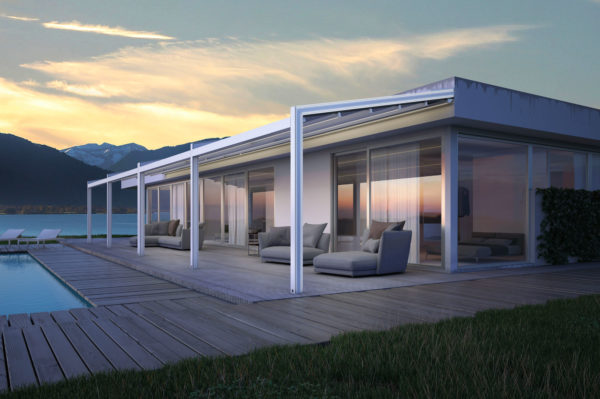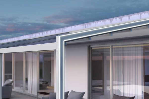 GENNIUS VEGA, la nouvelle pergola, qui est caractérisée par des inserts lumineux innovants, à lumière diffuse le long des guides et des poteaux. Un produit unique, qui se distingue par un nouveau design et de qualité, véritable marqueur des tendances futures du marché.