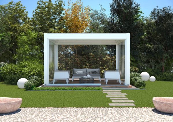 Disponible dans deux modes d’installation différents – mural et autoportant – la structure peut être intégrée avec des stores techniques latéraux à ombrage ou complètement transparents, ou avec des systèmes de fenêtres coulissantes. Le tout avec des possibilités de configuration élevées : pour la version au périmètre fermé avec tissu, par exemple, il est possible de choisir parmi plus de 500 tissus techniques disponibles ; le niveau de modulation de la contribution solaire peut être ajusté en fonction des besoins spécifiques du bâtiment dans lequel le produit sera installé, en respectant également la cohérence stylistique de la construction.
