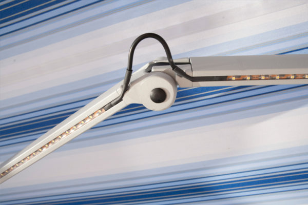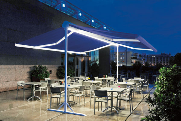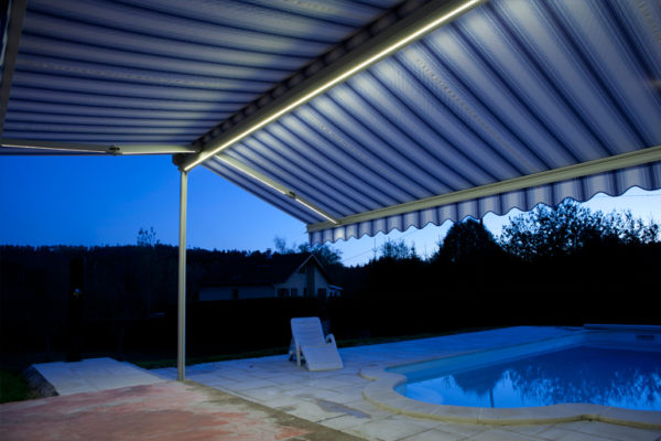 Store coffre compact sur pieds, déclinable en plusieurs versions : modèle grenat jade avec bras à double câble gainé ou modèle grenat on’x avec bras forty. De nombreuses options vous permettront de répondre à divers besoins : éclairage par leds pour assurer un flux lumineux doux, système de chauffage, système de fixation au sol au choix… De nombreux coloris armature et toile sont disponibles.